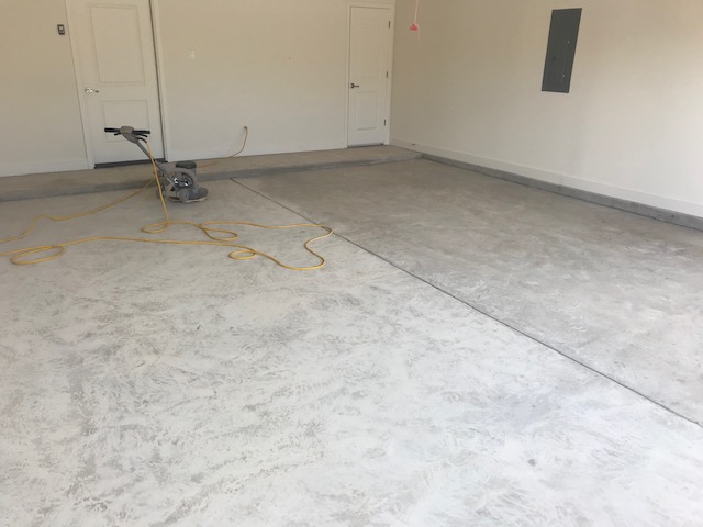 The next step is to grind the floor with a diamond grinder to prepare the concrete for maximum adhesion of the epoxy floor coating
